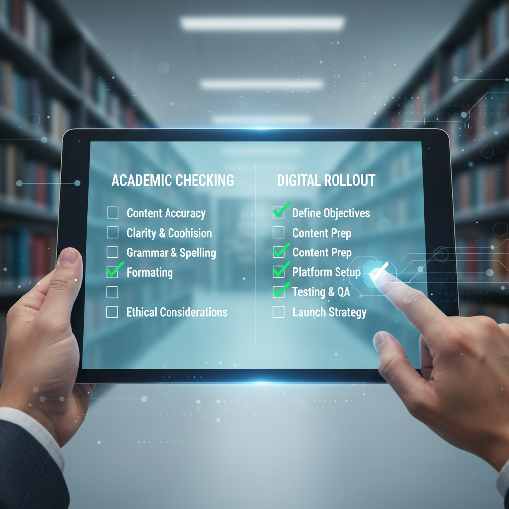- Tuesday: Automated system flags inconsistencies, suggests rephrasing, and recommends missing references.