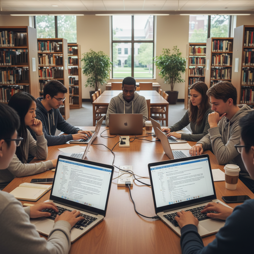 Alt: Diverse students using free academic writing tools with multilingual interface support for non-native English speakers