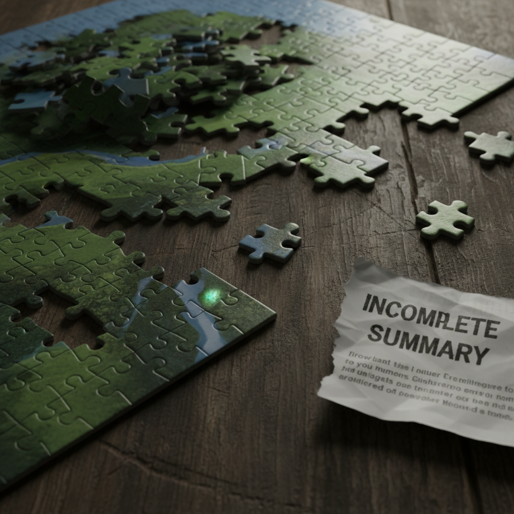The allure of brevity is powerful—cutting a 30-page paper to five bullet points feels like victory. But research shows that reducing word count often means sacrificing context, caveats, and subtle findings (PDF.ai, 2025). A three-sentence summary might impress on a slide deck, but it can hide methodological flaws, contradictory data, or even errors.