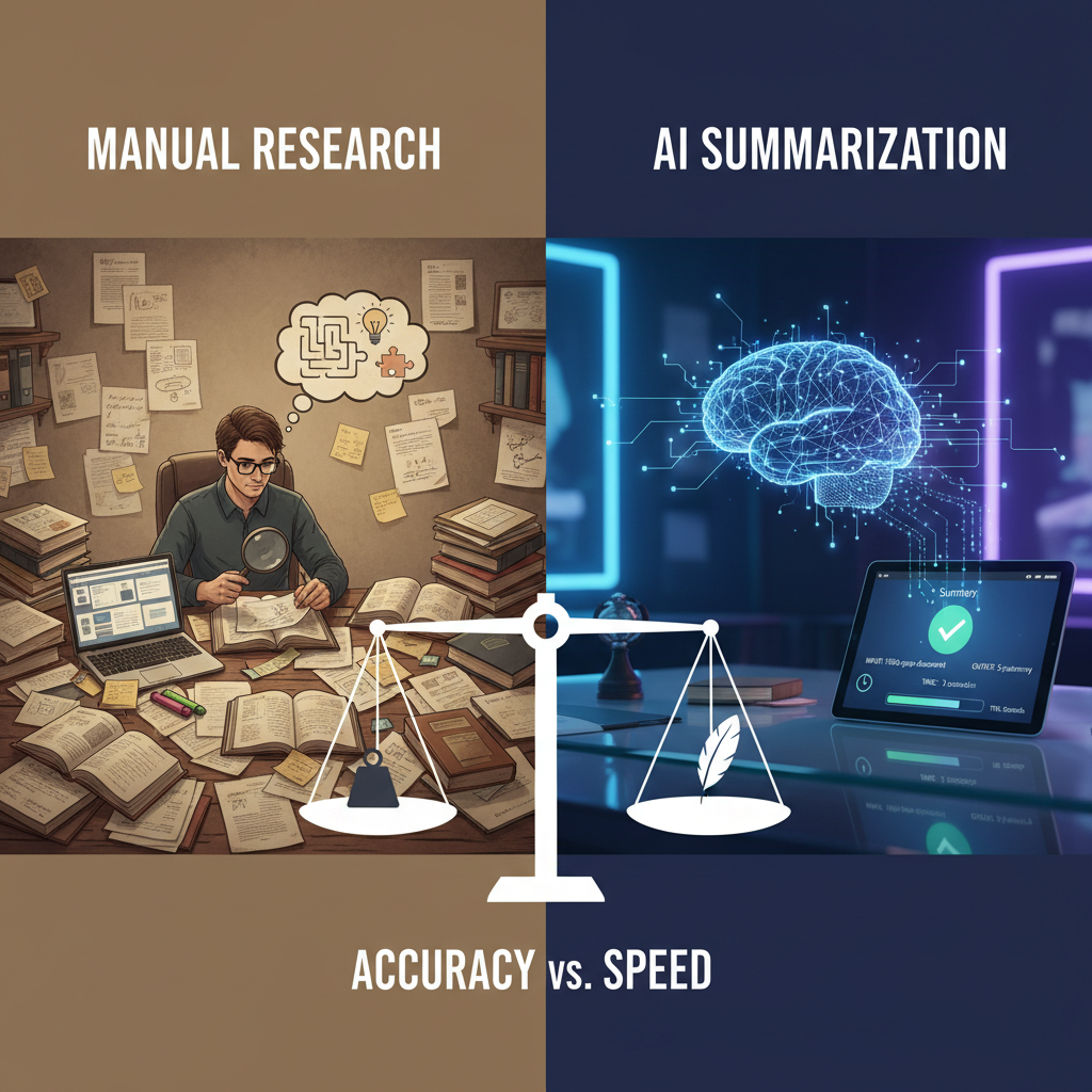| Manual literature review | Weeks to months | High accuracy, deep understanding | Time-consuming, error-prone |