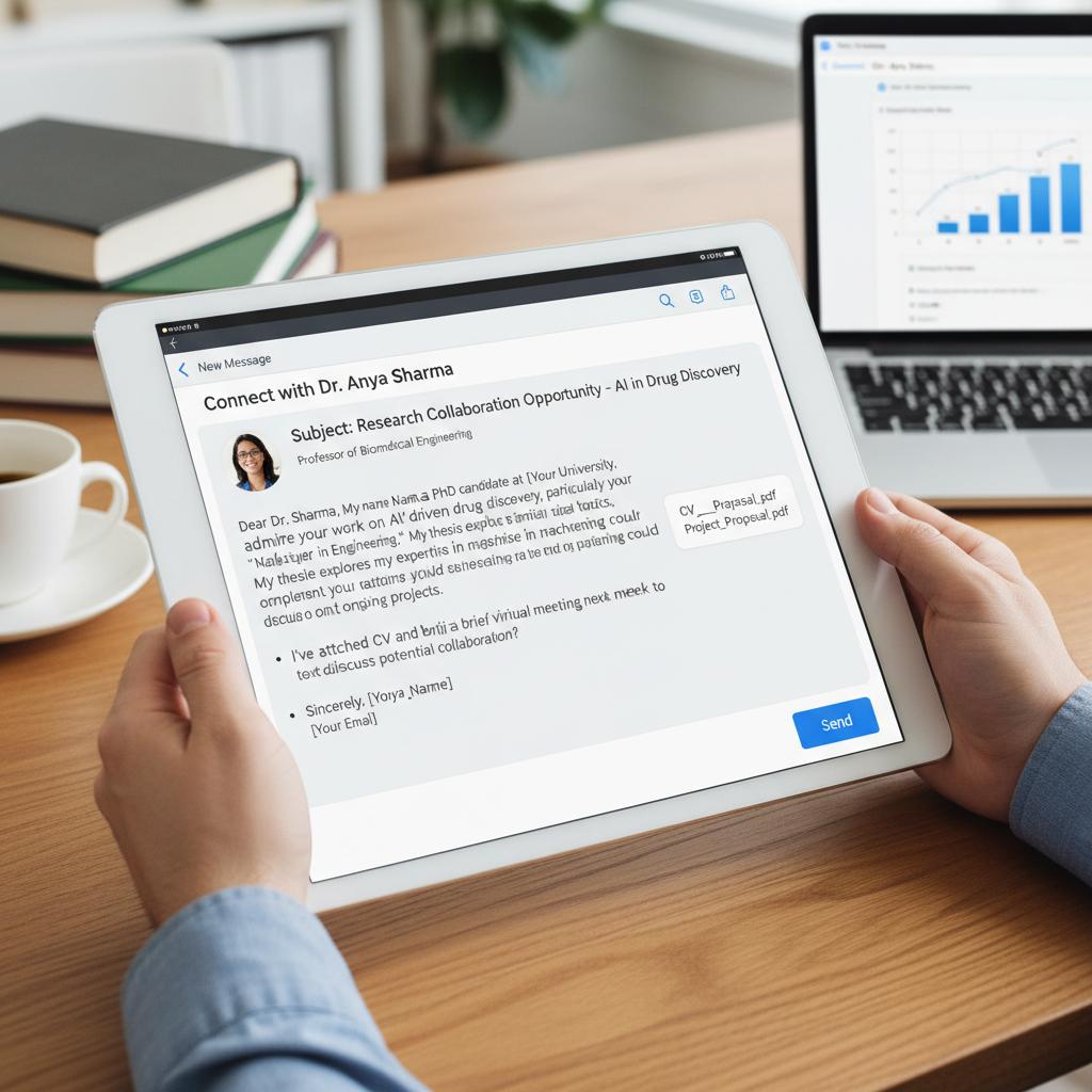 Example of effective academic networking message, screenshot-style overlay—your first impression counts.