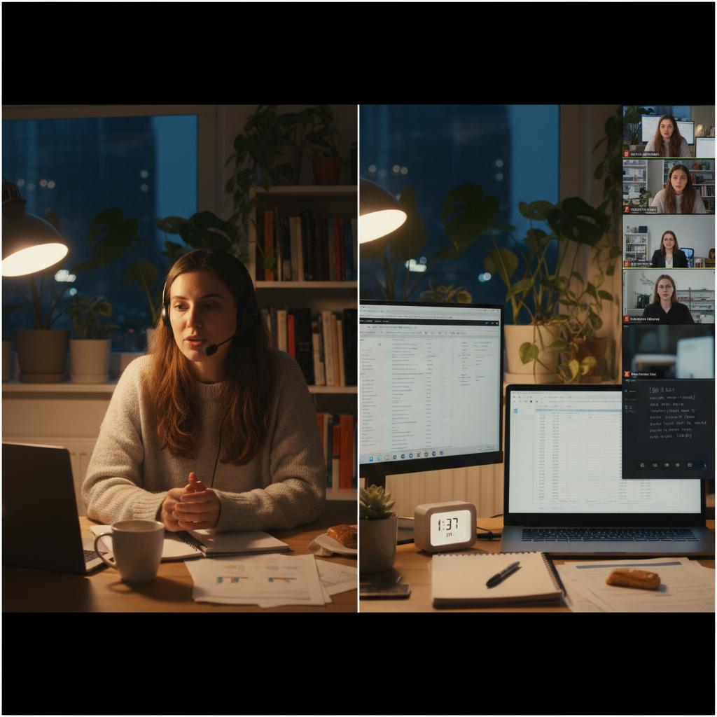 - Curate your space: Clean, neutral background with professional lighting. Eliminate distractions—phones off, browser tabs closed.