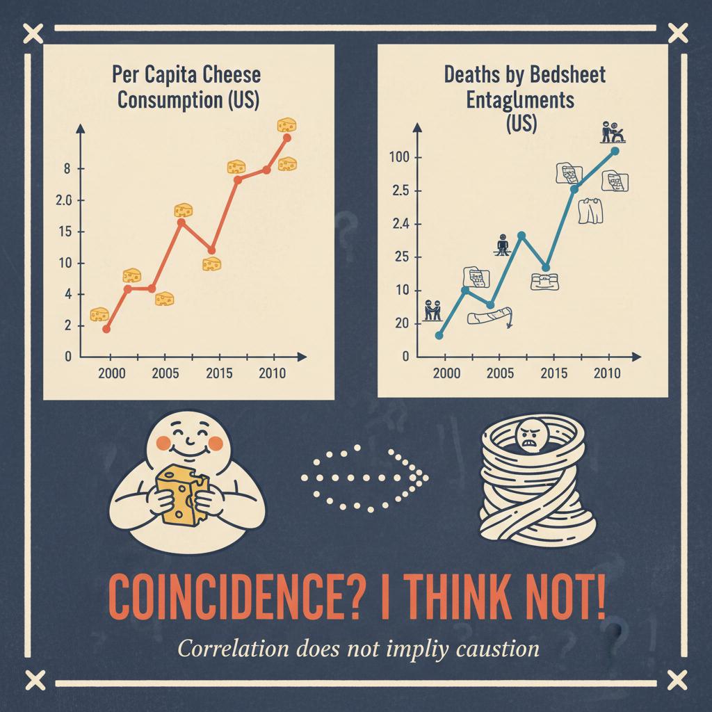 Correlation-causation confusion is the original sin of data work. Just because two lines on a graph rise together doesn’t mean one causes the other—a fact ignored with costly results. A 2025 Stanford study exposed how AI systems frequently conflate spurious correlations with real-world causes, especially in climate and economic modeling (Stanford Data Science Review, 2025).