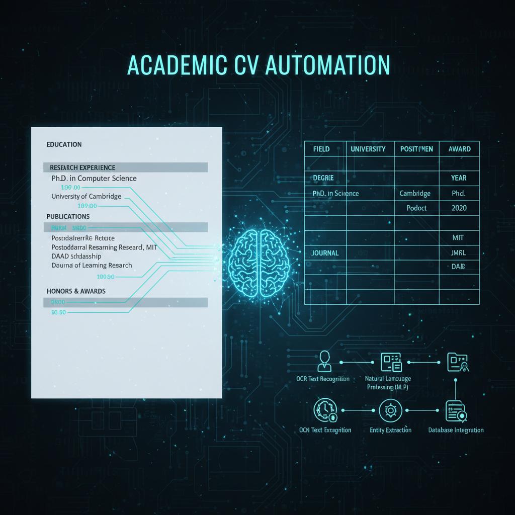 An AI-driven tool that automates parts of the academic CV creation process, including formatting, keyword optimization, and impact assessment.